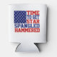 Funny patriotic can cooler says in red and blue letters TIME TO GET STAR SPANGLED HAMMERED. Makes a Great Gift! Put a SMILE on someones face.