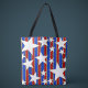 Three cheers for the star-spangled tote! Red and blue stripes sprinkled liberally with white stars let the world know where your loyalties lie. The perfect bag for hauling home a load of sparklers and skyrockets.
