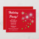 A red, silver, white and green holiday party invitation with sparkling stars and snowflakes. Personalise the text samples to suit your event!