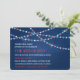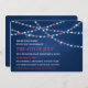 This patriotic invitation is cool for a 4th of July, Memorial Day or Labour Day party. The design is cool with red, white and blue stars on string lights. The background is a textured dark blue. What a fun invite for your guests to receive in the mail!
