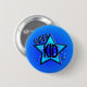 A graphic shinning star by artist/designer Charmaine Paulson on a button. The button has the text "Super Kid".