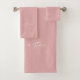 Star Trio in Pink & White with message and name Bath Towel Set