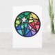 One bright star; hidden promise, stained glass sky. This bright design, originally made in hand cut paper, is suitable for Christmas or year-round.
