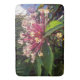 The beautiful image on this Bath Mat is an original photograph by ZoeSPEAK of a flowering clerodendrum bush. This variety is called Starburst, because each bloom is made up of magenta stems bursting out, with little white flowers at their tips. The Starburst is surrounded by a cluster of green leaves and a tropical green background. This plant blooms at the end of winter, more reliable than a groundhog.