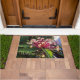 The beautiful image on this Door Mat is an original photograph by ZoeSPEAK of a flowering clerodendrum bush. This variety is called Starburst, because each bloom is made up of magenta stems bursting out, with little white flowers at their tips. The Starburst is surrounded by a cluster of green leaves and a tropical green background. This plant blooms at the end of winter, more reliable than a groundhog. There is optional text (Welcome) which is set for you to personalise or delete if you prefer.