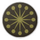 This graphic design, reminiscent of Mid Century Modern style of the 20th century, features a starburst motif in sophisticated, earthy colours.