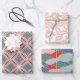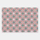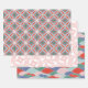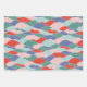 Starburst, mountains, race track S shape Christmas Wrapping Paper Sheets - Three wrapping paper sheets with a fancy tile pattern with a starburst centre. Dramatic paper! The middle sheet is an s pattern that mimics a roadway or a race track. Minimal in design but big on impact. The third sheet are multicolored mountains that look like mosaic cut outs or security envelope liners all put together to make a very cool landscape. Made with Christmas colours, but can be used any time for adults or children.