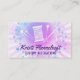 Watercolor style girly starburst background with needle and thread, sewing pins and spool of thread on this business card for a seamstress or alterations business.