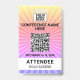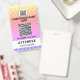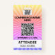 Starburst yellow, pink, purple Conference Event Badge with place for your event's QR code, logo and attendee designation and access level details.