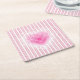 Starburst Valentine Heart on Soft Pink Stripe Square Paper Coaster