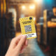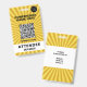 Starburst Yellow Conference Event Badge with place for your event's QR code, logo and attendee designation and access level details.
