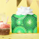 Digitally generated fractal starburst and pinwheel graphic in shades of pale mint to leaf green, accented with white, on a dark pine green background
