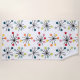 This beach towel has a mid-century modern design of starbursts scattered all over with circles on the end.
