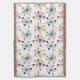 This throw blanket has a mid-century modern design of starbursts scattered all over with circles on the end.