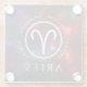 Show off your personality with this zodiac-inspired glass coaster, which features the stylised astrological character for Aries, the first sign in the Western zodiac, encircled by four key traits of those born under the ovine symbol and rendered on a starfield painted with polychromatic stardust across the black velvet night! Add your personality traits / name / etc. to your sign, and adjust filters and fonts as desired!
