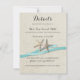 Starfish and ribbon beach inspired details or information card with sandy coloured background. Flowing aqua ribbon and two starfish with with editable text to compliment our invitations.