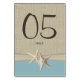 Starfish and burlap printed table number card to compliment our Beach Amore' invitation set in ocean sky blue, can be personalised and ordered individually. All parts of this card are printed. There is no real burlap or starfish attached.
