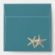 Starfish and teal colour envelope to compliment our square inviation with burlap look printed design inside. No real burlap is attached. Entire envelope is printed.