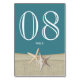Starfish and burlap printed table number card to compliment our Beach Amore' invitation set in Ocean Teal, can be personalised and ordered individually. All parts of this card are printed. There is no real burlap or shells attached.