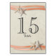 Beach themed, coral ribbon and starfish table number card to compliment our beach theme invitation set, can be personalised and ordered individually.