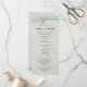 Aqua ribbon, lace and starfish grey vintage beach Wedding program card is two sided with ceremony details on front and wedding party participants on the back.