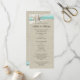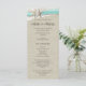 Aqua ribbon, burlap, lace and starfish rustic beach Wedding program card is two sided with ceremony details on front and wedding party participants on the back.