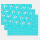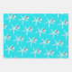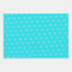 Starfish and ornament pattern Christmas wrapping paper sheets. Bright aqua blue colour paper with white sea stars. Each sheet in the set has a different size starfish pattern. Each sea star has a little silver white ornament hanging from one of it’s legs. Perfect for gift giving in a warm climate.