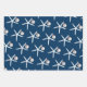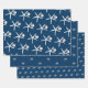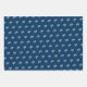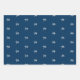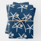 Starfish and ornament pattern Christmas wrapping paper sheets. Dark navy blue colour paper with white sea stars. Each sheet in the set has a different size starfish pattern. Each sea star has a little silver white ornament hanging from one of it’s legs. Perfect for gift giving in a warm climate.