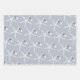 Starfish and ornament pattern Christmas wrapping paper sheets. Rolled sheets of grey-blue, in light, medium and dark colours, each contain a pattern of white sea stars and a silver white ornaments. The perfect design for Christmas with a coastal theme.