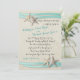 Starfish and aqua ribbon destination beach wedding invitation for your wedding by the sea. Weathered seashore style background in warm sand tones.