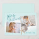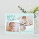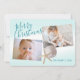 Soft aqua starfish and sand dollar holiday photo card with room for two favourite family photos. Merry Christmas greeting text and fonts can be changed as preferred.