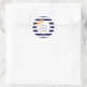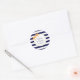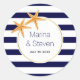 Lovely wedding sticker showcasing a navy blue and white striped pattern, a white circle in the centre with your text and a pair of starfish. It is perfect for your summer beach wedding.