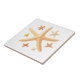 An illustration of a big yellow starfish surrounded by some other smaller starfish. The starfish looks beautiful and simple here.