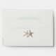 Off white envelope with starfish and ribbon to compliment our Starfish Tropical Vintage Beach Turquoise envelope with personalised return address on back flap. Soft watercolor shading inside to compliment our wedding invitations.