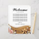 Beach destination welcome wedding letter featuring a simple white background, sandy beach with a starfish and seashells.