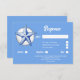 A beautiful blue and white watercolor starfish rests againt a white circle edged with faux silver and is framed by an ocean blue background. Above the elegant design are two white templates which are fully customisable. These are ideal for a starfish; beach; coastal; waterfront or seashore wedding