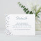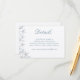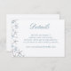 Wedding details card with starfish border. Text is light blue and is shown on upgraded champagne shimmer paper. Light blue and grey sea stars are “falling” down the left edge of small enclosure cards that have size selection.
