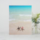 Printable starfish bride and groom blank paper to print your own invitations or notes. A beach scene of blue ocean water and sand covers the background with two starfish holding hands at the bottom.