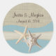 Starfish & Burlap Ocean Sky Blue Classic Round Sticker