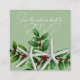 Warm climate Christmas party or wedding reply card enclosure with QR code template. Little square cards are light pine green with white script and starfish with holly design. The wording asks guests to scan the code to reply. The QR code is uploaded to the back of the card.
