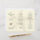 Beautiful starfish wedding programs to fold in thirds. A starfish couple decorates the front with black text in three sections. Tri-fold, or accordion fold, after purchase. Carefully proofread all text before ordering. Natural cream / ecru colour can be changed with the "customise it" button.