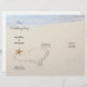 Beach wedding program with starfish couple and heart in sand background image. This ceremony program template will be folded by the customer to create a tri-fold, accordion fold, z-fold program. Add the "order of ceremony" and "wedding party" list to the centre and right side after carefully typing it up on a word program or other place where you can check for errors. Then add it to the templates. NO ONE will proofread your text!