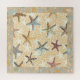 Starfish in the Sand Jigsaw Puzzle. Grandmother, Beachhouse, coastal, seashore style. Seaglass border. Teal, beige, pink, blue, fun colours.
