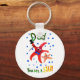 A keychain with a handpainted paper collage design of a dancing starfish and a young starfish saying, 'Dad, You are a Star!' Suitable for Father's Day or a father's birthday. See also matching greeting card, gifts and apparel.