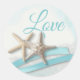 Starfish Love Ocean Blue Ribbon and Lace Classic Round Sticker
