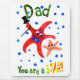 A mousepad with a handpainted paper collage design of a dancing starfish and a young starfish saying, 'Dad, You are a Star!' Suitable for Father's Day or a father's birthday. See also matching greeting card, gifts and apparel.