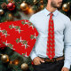 Bright red Christmas tie for the holiday season with a tropical theme of starfish and holly. The little sea stars are wrapped in green leaves with red berries and are printed in a pattern all over the tie.