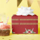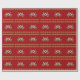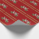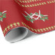 Tropical Christmas wrapping paper on a roll. High quality gift wrap with a starfish and holly design. Tiny gold Christmas tree ornaments are strung together between the rows of starfish. Background is dark holiday red. Choose a paper type and roll length.