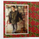 Triple fold, photo Christmas card with two big photo templates inside. The starfish and holly design makes a pattern inside and outside these unique holiday greeting cards. The sides of the card fold outward to reveal big photo templates and your choice of greeting, with a signature, will print in the middle. On the front, an off-white block holds chunky red text. The sample wording is “From our home to yours” and matches the font and colour inside. Use to share family photos or send from a boyfriend / girlfriend.