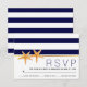 Starfish and navy blue white stripes beach wedding RSVP response card. The navy blue and white striped pattern and the starfish on the corners of a white frame with your text adorn this elegant summer wedding card.